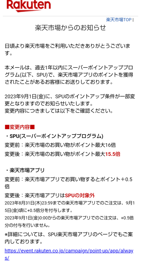 アプリでのSPUがなくなっちゃう。